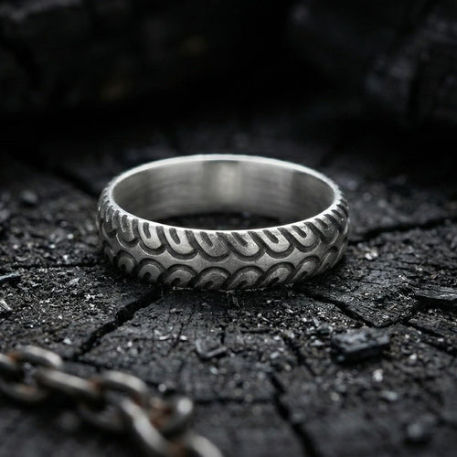 925 Ayar Gümüş Arazi Lastiği Desenli Unisex Yüzük