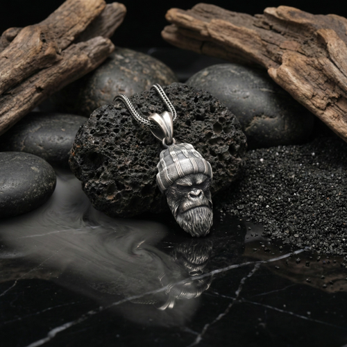 925 Ayar Gümüş Goril Kolye: El Yapımı Oksitli Erkek Kolyesi
