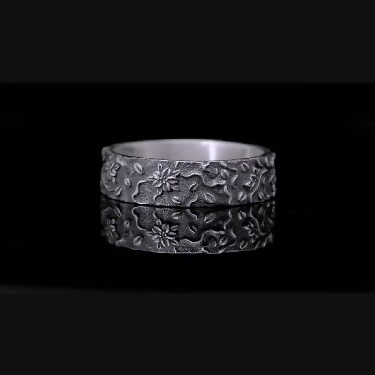 Oksitlenmiş Gümüş Çiçek Temalı Yüzük